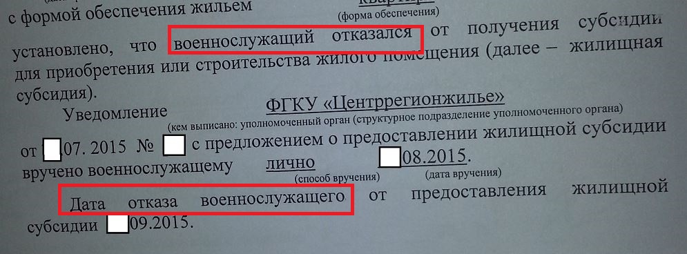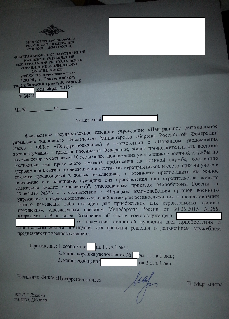 #1998В выложенных письмах есть фраза об отказе военнослужащего от выделенной субсидии, хотя в приказе МО РФ 333 сказано "О принятом решении Вам необходимо сообщить в течение 30 дней с даты получения настоящего уведомления в уполномоченный орган (структурное