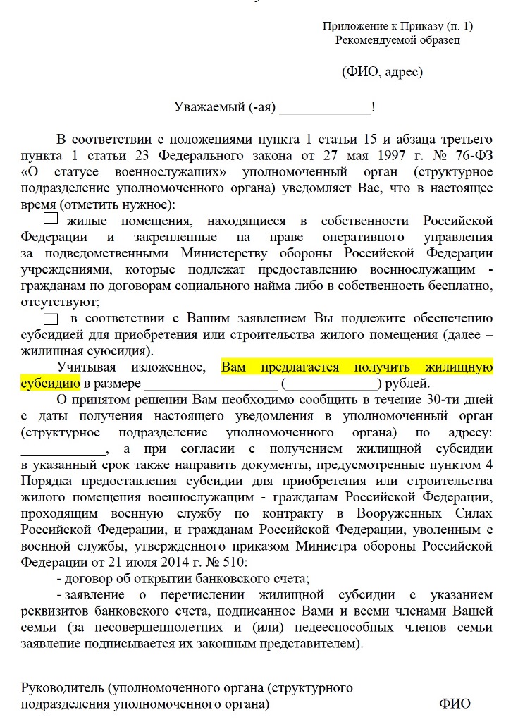 Капитан копейкин,Интересная фраза " о готовности предоставить жилое помещение или жилищную субсидию..."
