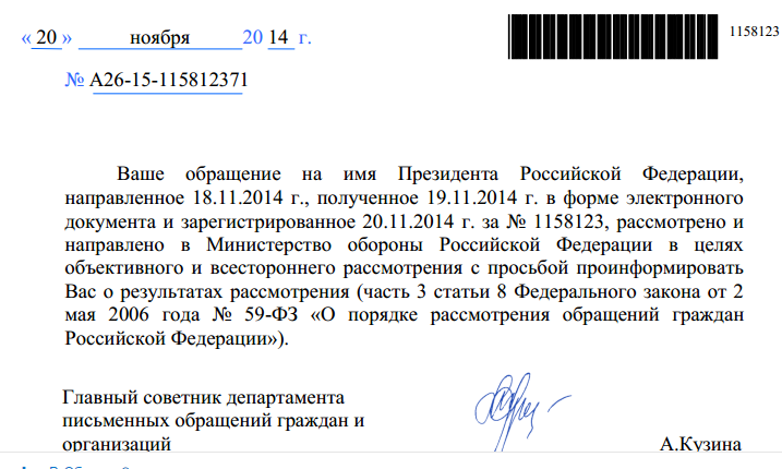 Получил ответ на повторное обращение к президенту. Один в один только подпись другая.