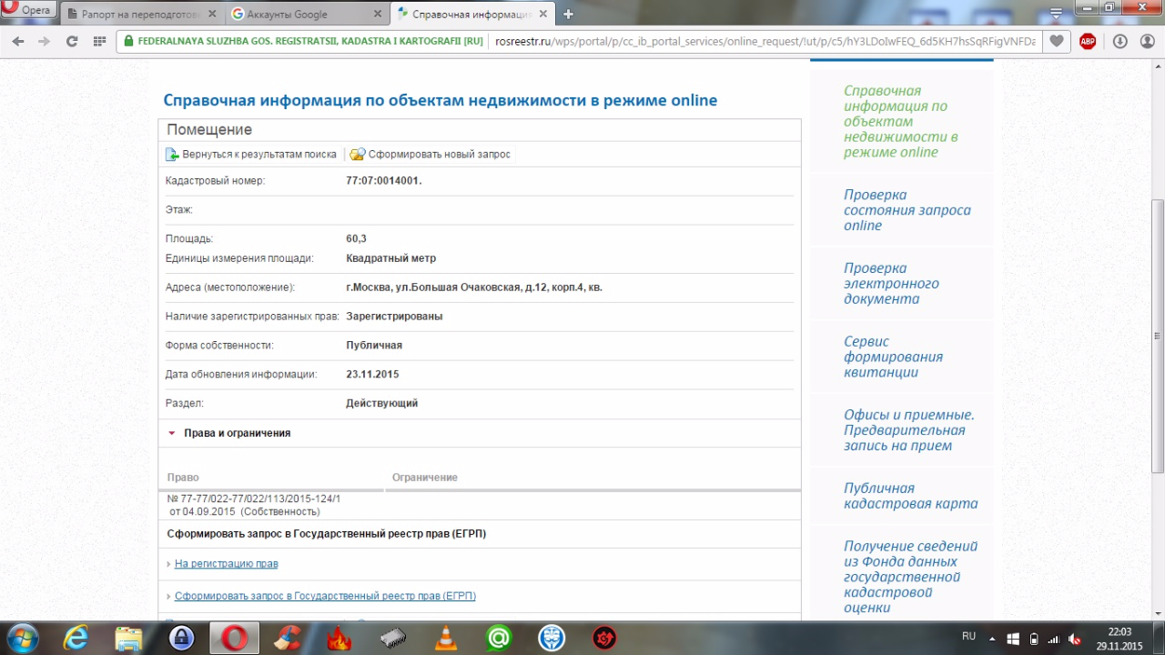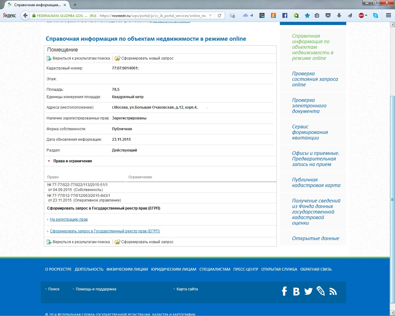 СтарожилКликаете на вкладку "Права и ограничения", под надписью "Ограничения" должно высветиться "ОУ" или полностью "Оперативное управление". Написал по памяти, что видел на скриншотах, которые выкладывали.