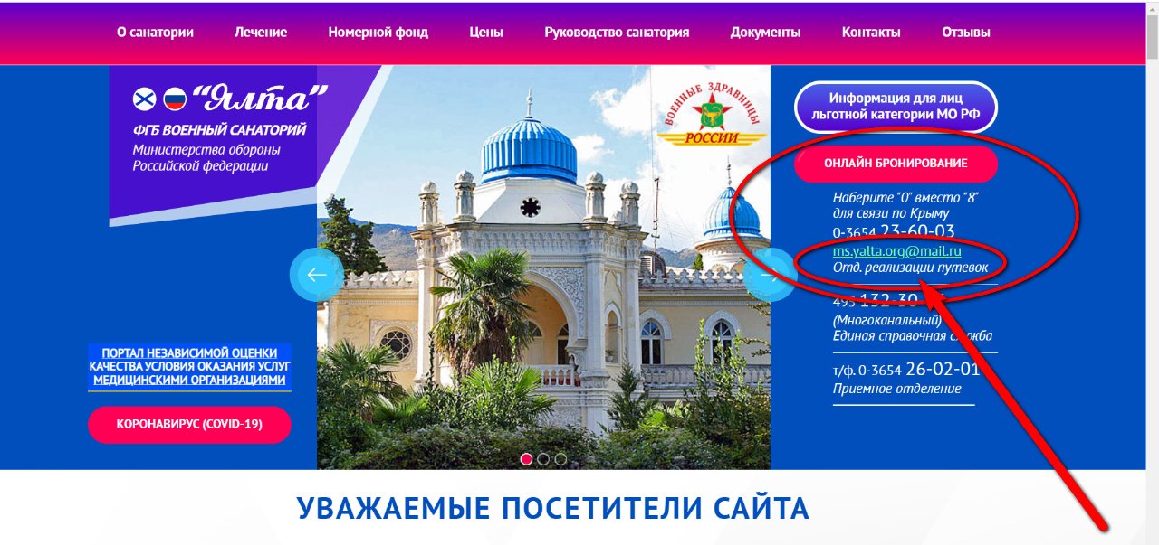 #20296Уважаемый Александр412Например, одним из представителей таких санаториев является военный санаторий "Ялта". На главной странице санатория https://vs-yalta.ru/ указано:ВладрНекоторые санатории уже вывесили объявление, по электронке не присылайте, только через Центр Туризма, через личный кабинетДрузья, а как вы вообще в личный кабинет попадаете?