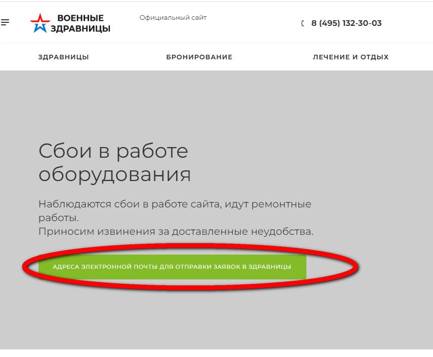 #20706На сайте МО выложили, что в связи со значительным количеством обращений возможны технические сбои. И просят отправлять заявки по электронной почте. Далее идёт список электронных почт всех санаториев.