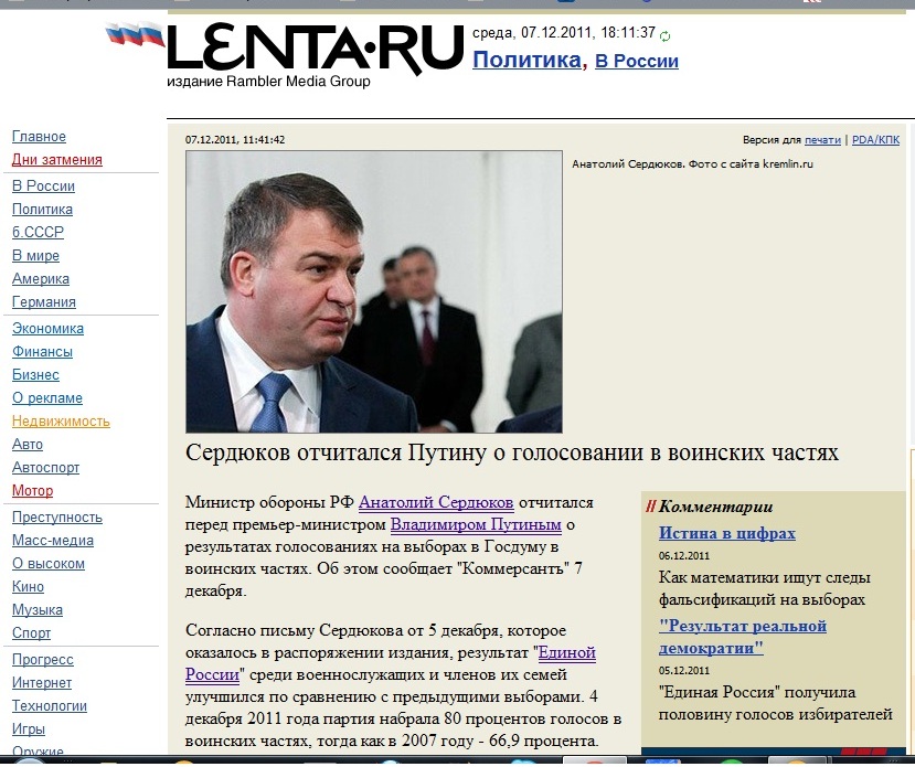 Министр обороны тоже "волшебник": 95% военных пришли голосовать, 80% - за "Единую Россию" :lol: http://www.newsru.com/russia/07dec2011/serd.html