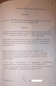 3.Определитесь с требованиями. Должна быть взаимосвязь, в чем нарушил командир Ваши права, кроме невыдачи аванса.