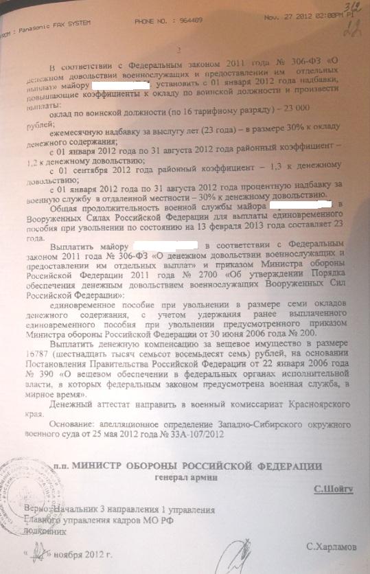 Еще раз внимательно сейчас просмотрел материалы дела и обнаружил, что судья никак не отразил мое ходатайство, в котором я просил приобщить уведомление от Пред КГВС, с моей росписью, о доведении до меня приказов МО РФ - один на отмену приказа КЧ на исключение, другой - на новое исключение с предоставлением отпусков. Это уведомление от ПРЕД суда 28 ноября 2012г. было первым и единственным, в котором меня какое-либо должностное лицо уведомило о моем новом статусе - что я снова военнослужащий.