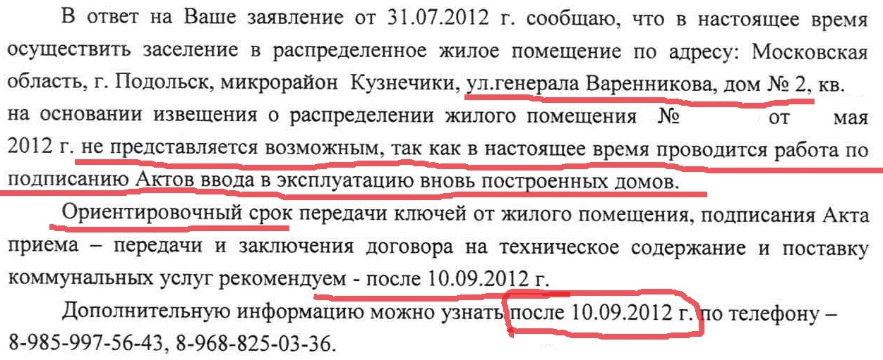 Я запросил здесь по адресу podolsk@slav-ex.ru информацию о том, когда я могу заселиться в распределённое мне жильё. И вот что мне выслали на электронную почту...