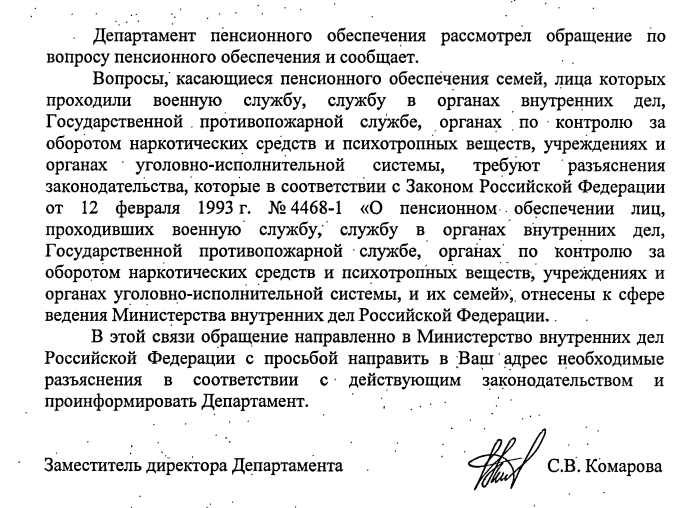 Только что получил ответ из Департамента пенсионного обеспечения. Куда только не отправляет администрация президента наши обращения чтобы не отвечать самим и не доводить до президента.