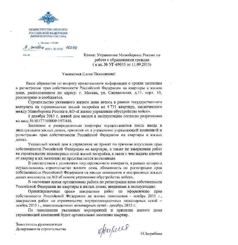 Сегодня получила ответ из ДС, почему-то от 8.10. Так понимаю по какой-то жалобе отписались. Собственность плавно с августа (Пирогов уверял) переходит уже на ноябрь. А был обещан сентябрь, октябрь. Ну да уже не привыкать.