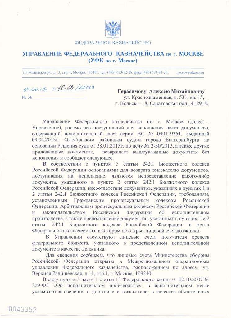 1. да 2.да.3.да.4.нет.ну вы почитайте их отписку..мол извещение о том что решение суда вступило в законную силу не поступало..поэтому они ничего не исполняли...а я выложил это извещение о вступлении в силу решения ...которое им отправлялось..говорю же..тупят в наглую...не пойму смысл этого тупежа..все равно решение придется им исполнить7777711,