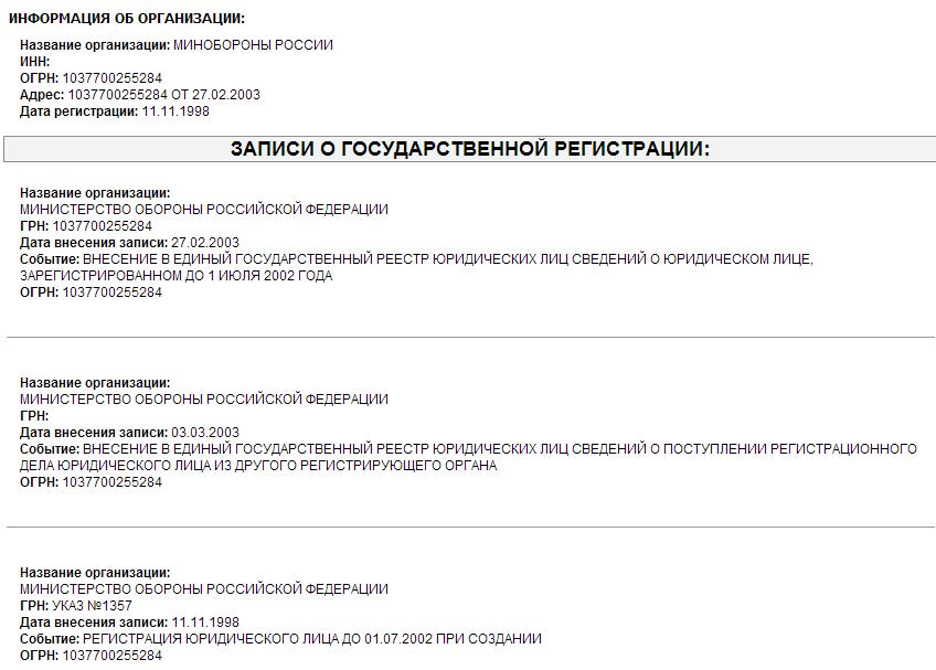 А здесь нельзя их выложить?у меня есть данные министра обороныПомогите найти идентификационный номер и дату регистрации Министерства Обороны.