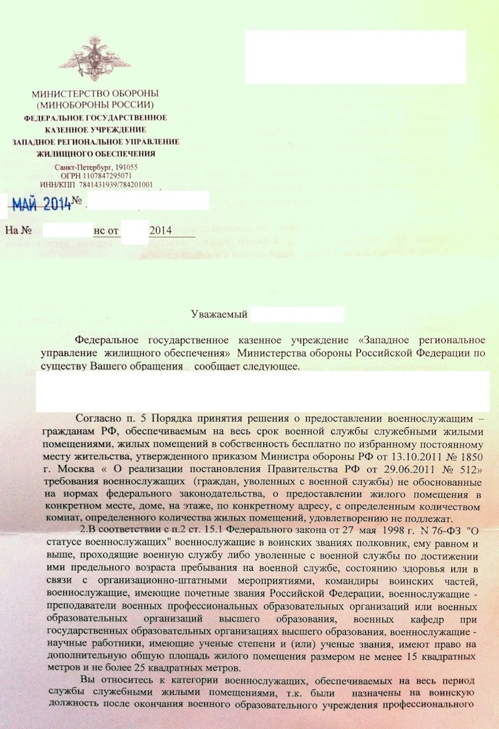 прислали ответ на отказ от очередной квартиры без допметров...