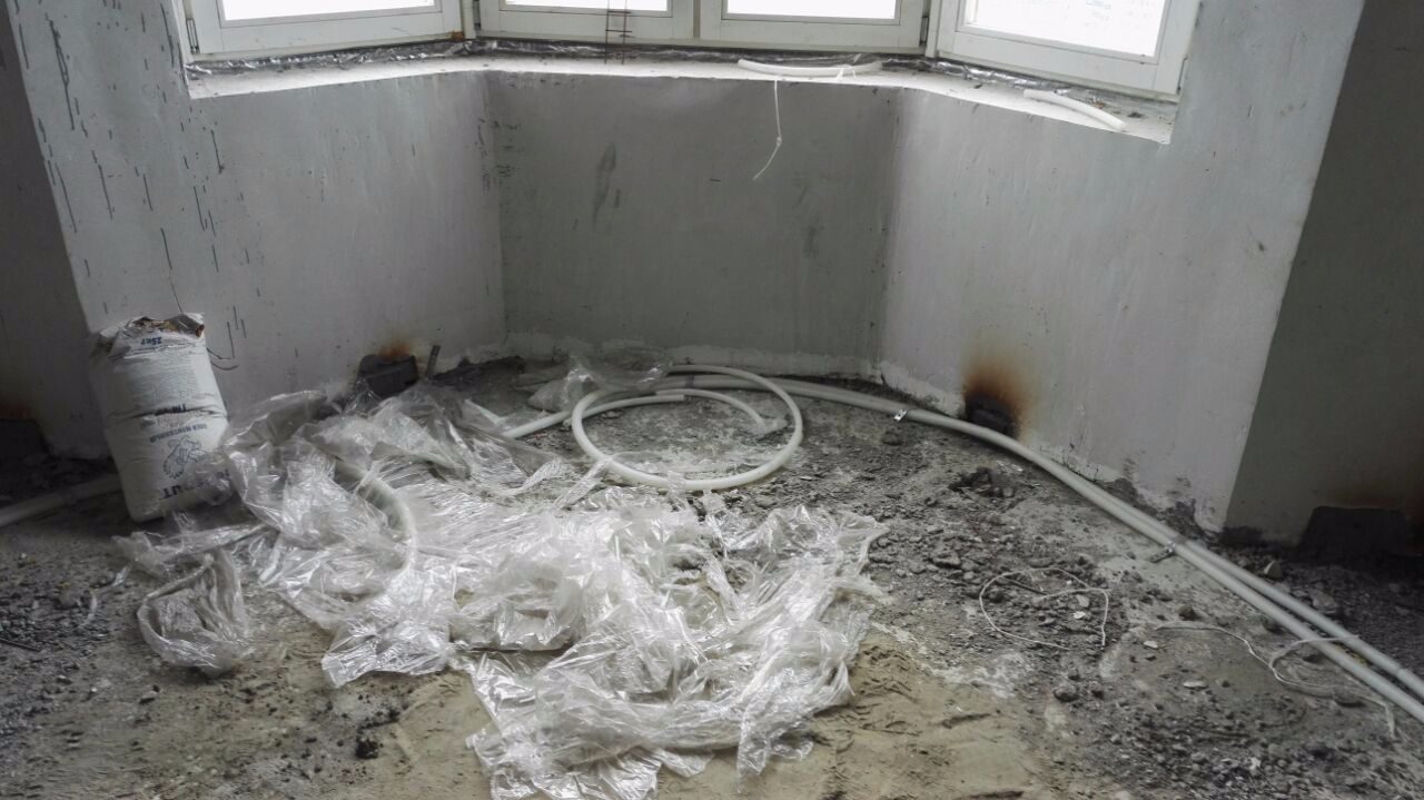 4. В квартире нет сантехники, местами отошли обои, нет линолеума.