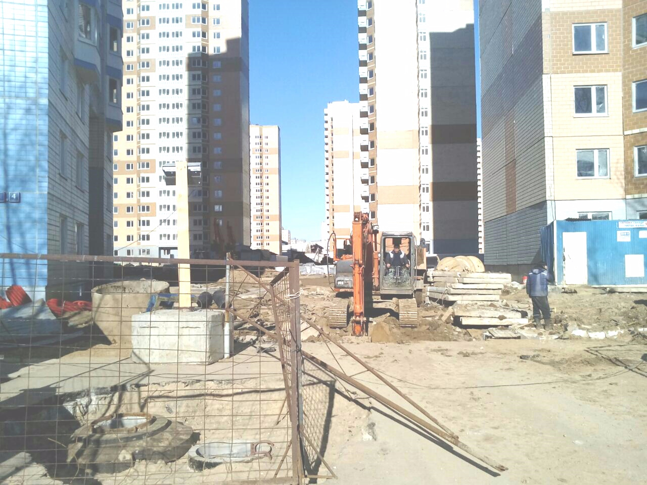 Сегодня мимо пробегал....сделал немного фото. Начали рыть колодец на магистрали, активно работают на территории во дворе 4-го и 16-го корпусов. А на одной из фото, разрыли камеру с отоплением, мне так кажется. Некоторые фото получились темными, пришлось высветлять, поэтому качество не очень.