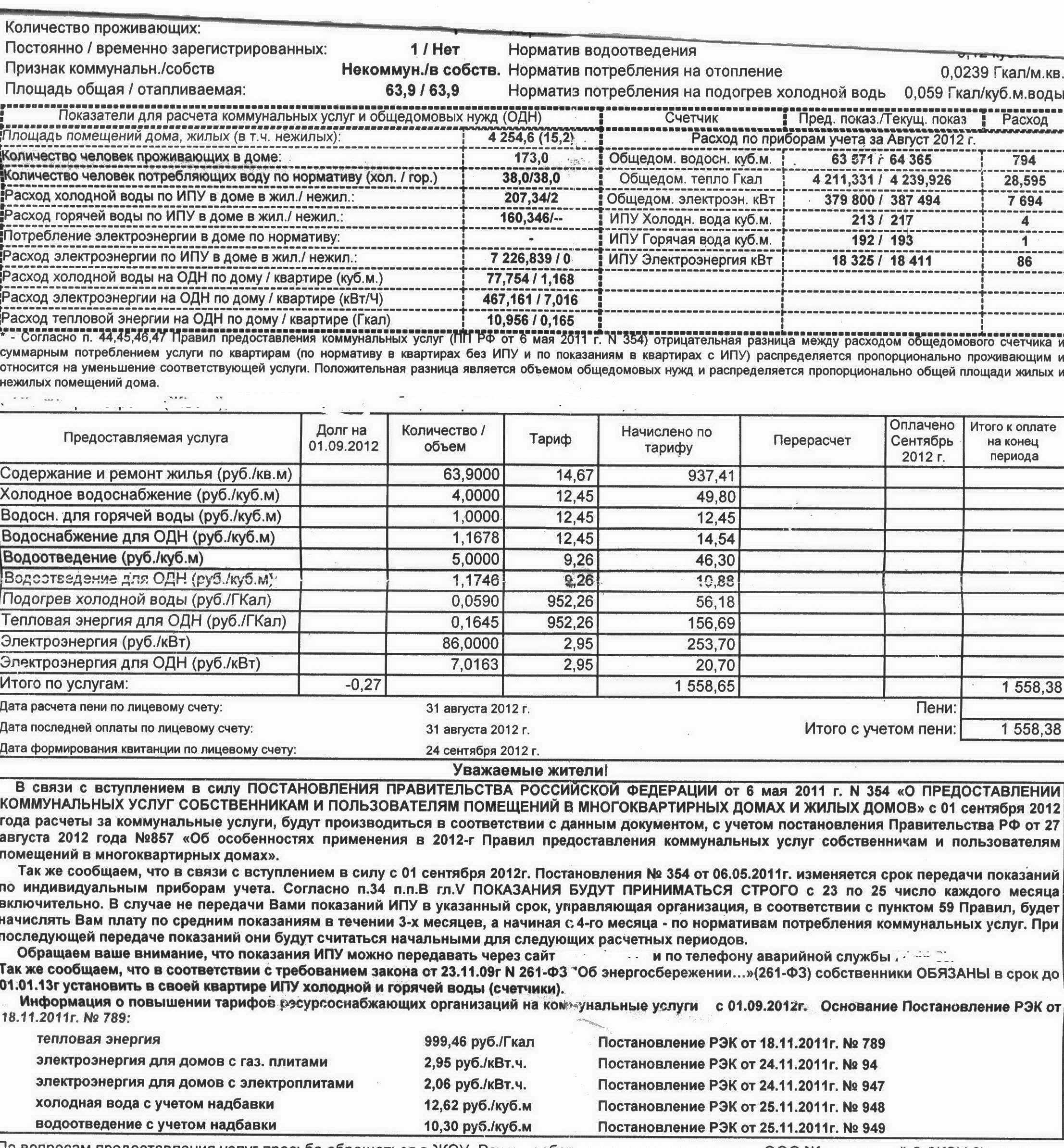 А теперь когда начали вникать возникли вопросы. Я, например, свою квитанцию изучил вдоль и поперек и каждую цифру проверил, поэтому у меня вопросов нет. Вот пример моей квитанциилично я уже не один год живу в съемном жилье за фиксированную плату и в квитанции не вникаю
