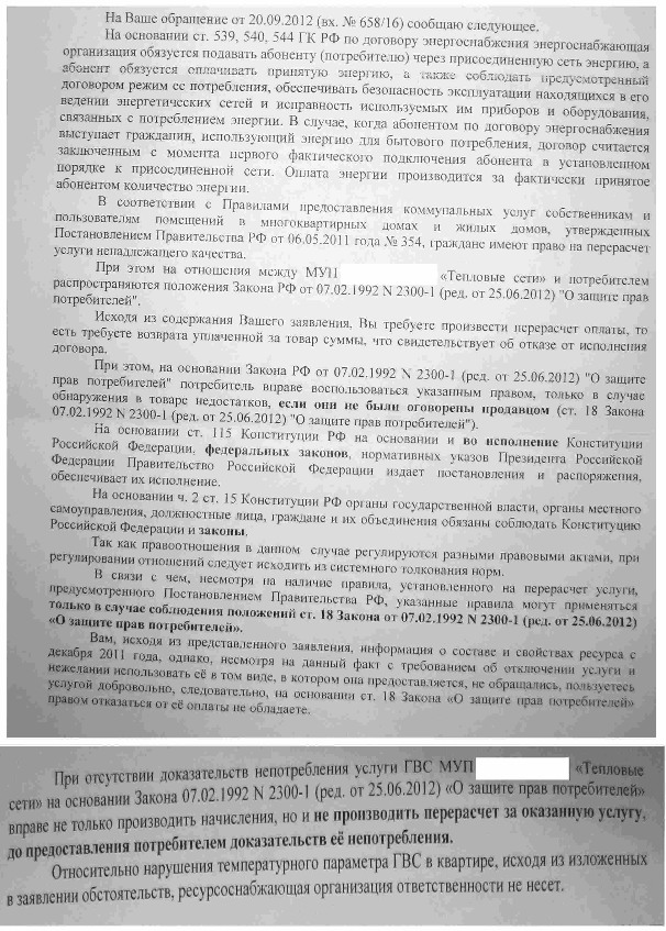 Уважаемые! Взгляните на вложение, пожалуйста-тепловые сети отказывают в перерасчете по несоответствию состава и свойств ГВС санитарным нормам, в связи с отсутствием доказательств непотребления ГВС, каковы перспективы выиграть в суде по указанным ими основаниям?