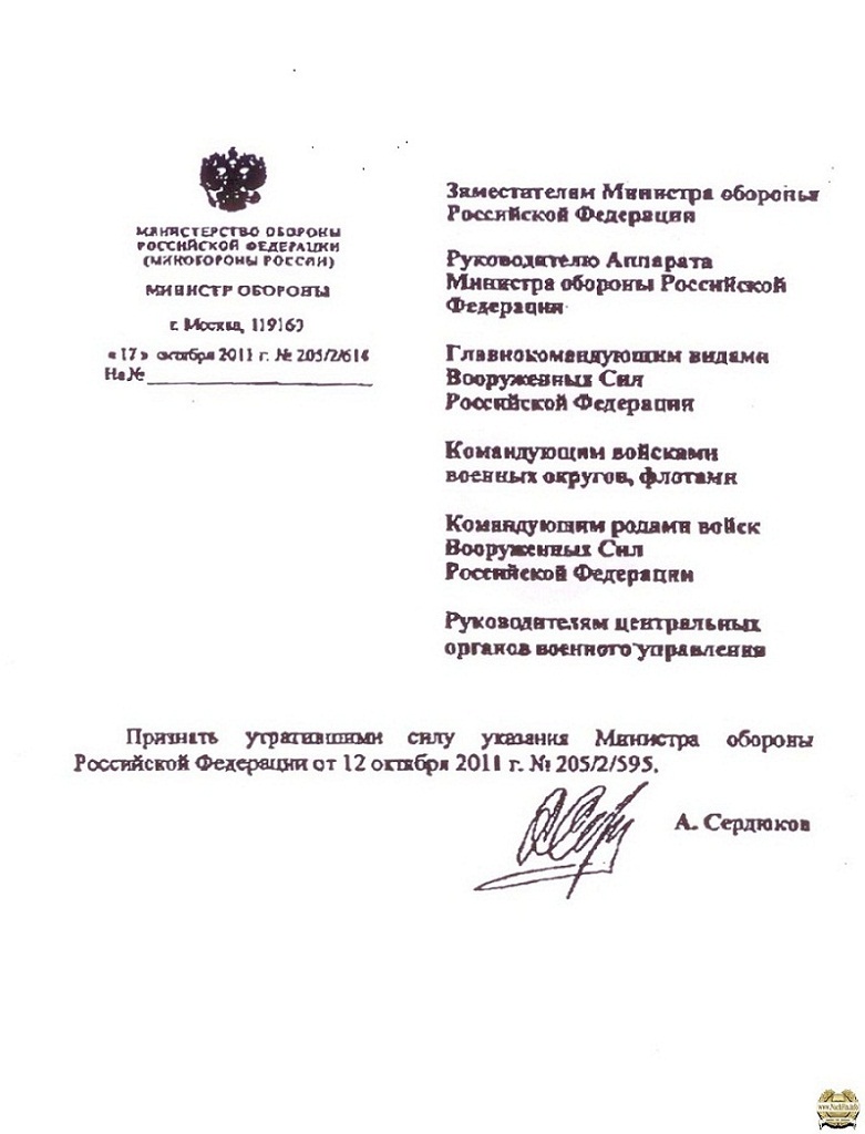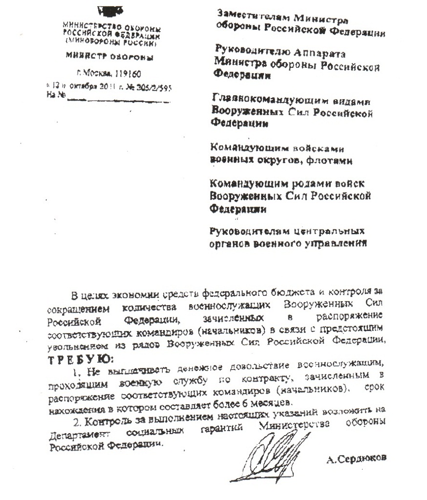 Архив Указание Сердюкова - заштатникам не платить!