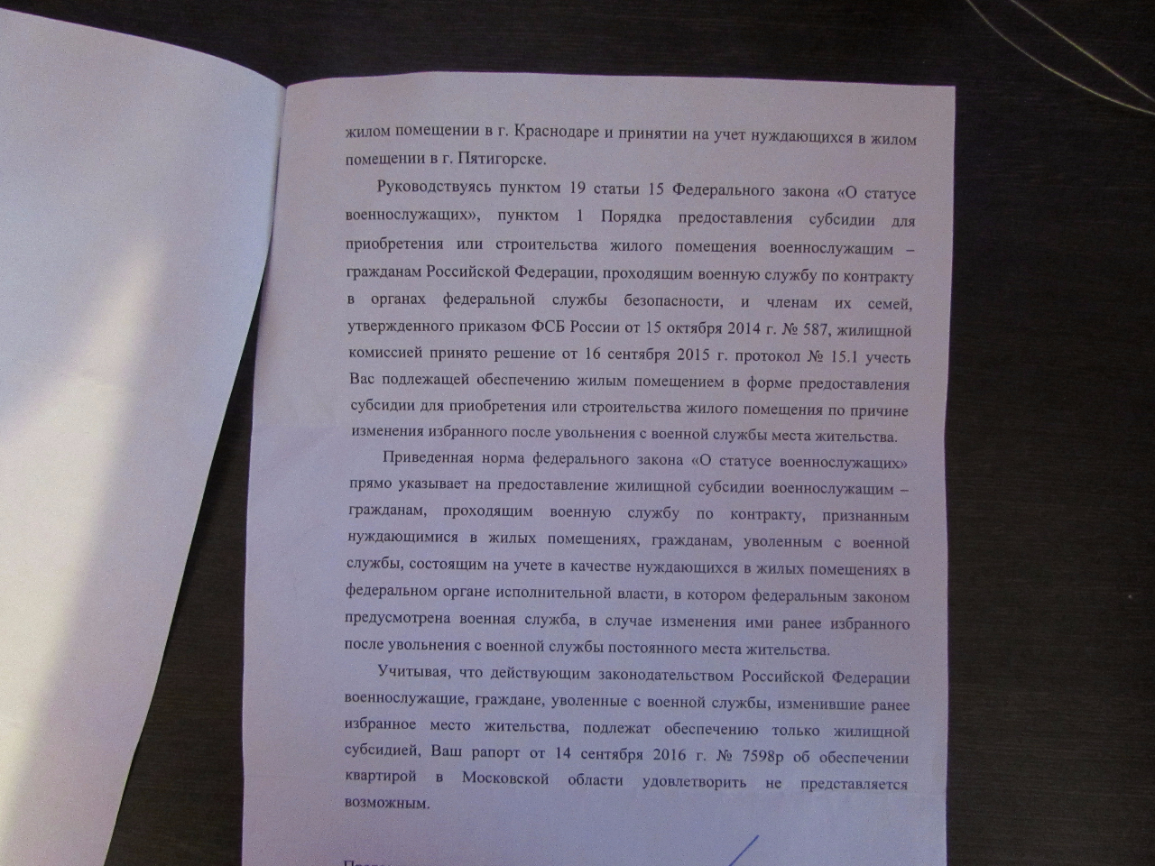 #2306Покажите что Вам написали в отказе о предоставлении квартиры.QR_BBPOST Тем более, что он согласен перейти с ЖС на жилье (из-за дочери в основном).