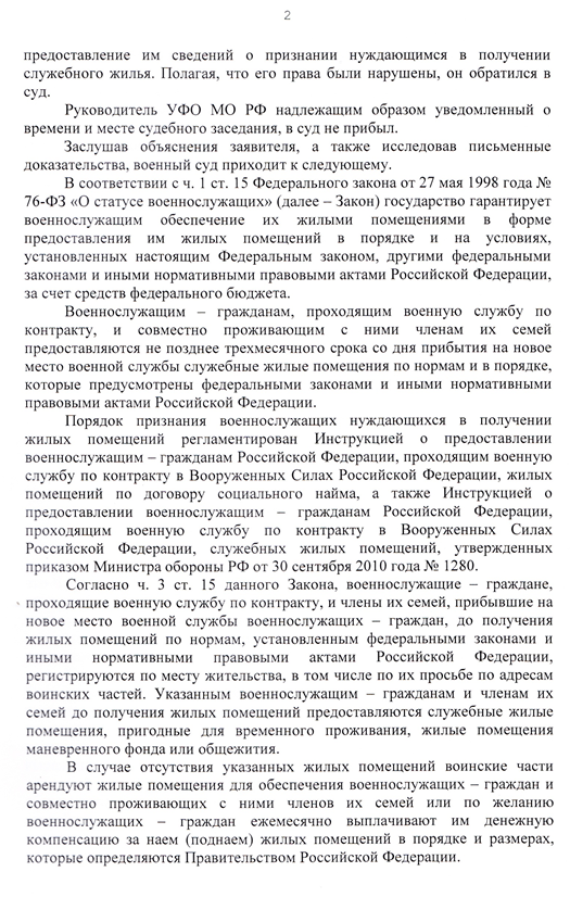 Заявительный характер обеспечения служебным жильем определен ПМО 1280.