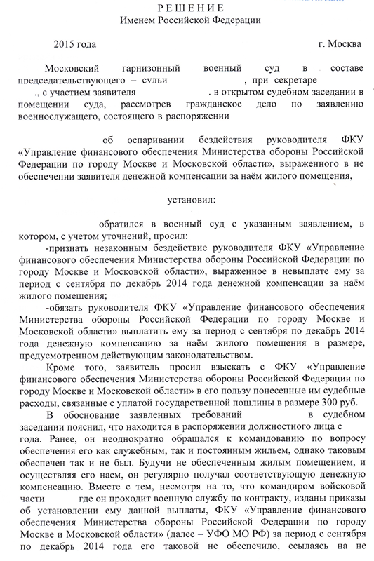 день добрый Ув. форумчане! поясните пожалуйста! прибыл на новое место службы и принял дела и должность 22.11.2014г (пр. ком в/ч), 23.12.2014г прописался при части. 03.03.2015г мне предоставили уведомление о включении меня в список на предоставление служебных жилых помещений с 05.02.2015г. в настоящий момент исполнил рапорт и приложил все необходимые документы для выплаты компенсации за поднаем служебного помещения. я осуществляю поднаем с 23.11.2014г, договор аренды у меня заключен с этого времени!!! но по прибытию в финансовую службу мне ответили, что выплатят денежные средства только с момента заключения в список, т.е. 05.02.2015г!!! почему? они мне так и не ответили! Статья 15 закона 76-ФЗ протер до дыр, мож мозгов не хватает, так вот 2 мес назад все норм моим сослуживцам делали! мож лицом не вышел :D