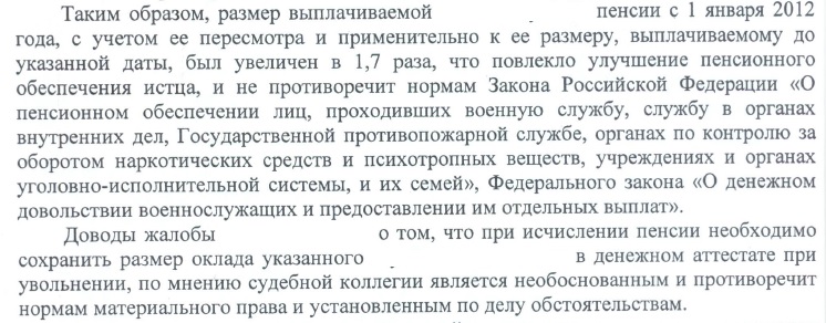 "Указанное денежное довольствие учитывается при исчислении пенсии с 1 января 2012 года в размере 54 процентов и начиная с 1 января 2013 года ежегодно увеличивается на 2 процента до достижения 100 процентов его размера. С учетом уровня инфляции (потребительских цен) федеральным законом о федеральном бюджете на очередной финансовый год и плановый период указанное ежегодное увеличение может быть установлено на очередной финансовый год в размере, превышающем 2 процента."