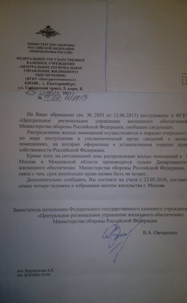 06.02.2014 г. Из ДЖО МО РФ направлено письмо в ДИО МО РФ и СпецТУИО МО РФ.