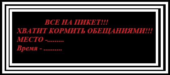 #23794А если у кого что не получиться при обоюдном желание или вообще кинут с предварительным - то тут тогда уже товарищи считаю и письма первым людям и пикет и бунт целесообразны. А пока кризис, много воров которых очень трудно побороть, но про нас помнят и решают вопросы и мы в этом убедились на примере Москова.
