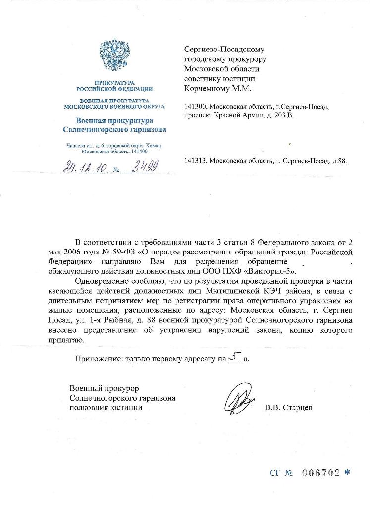 Завтра постараюсь выложить ответ прокуратуры Солнечногорского гарнизона.обрый вечер! Выкладываю файл с ответом из прокуратуры . И вчера приняли заявление в суд. Хоть какое то движение.