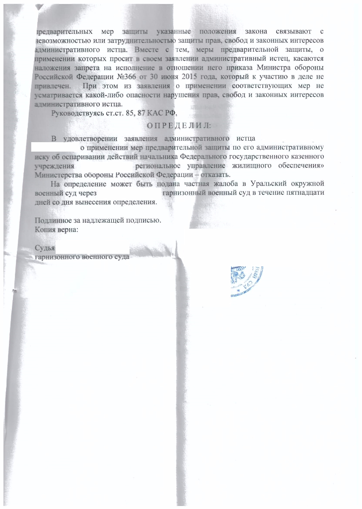 А это решение от 14.09.15 г.состоялись все слушания ,26 .08 было вынесено решение конечно мне отказали,и ни чего не нарушено ,и уведомление несет в себе всего лишь информационный характер,об этом и утверждали юрист из РУЖО и представитель командира, конечно у меня есть 30 дней для обжалования .
