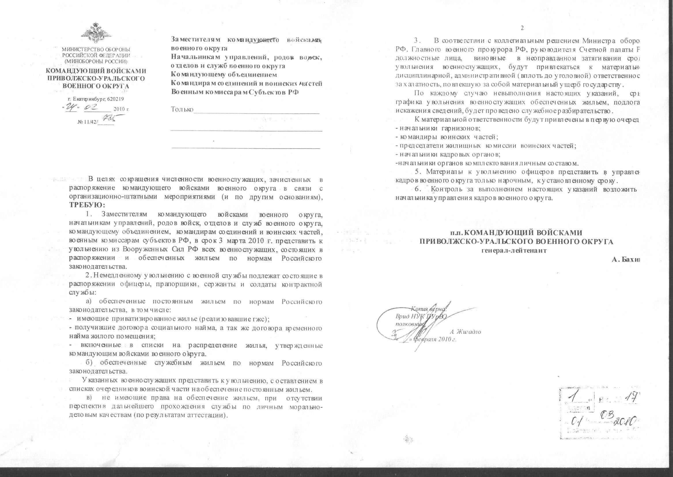 В 10-й раз вижу эту "писилю". Но еще не видел копии с ПОДПИСЬЮ командующего!О сокращение численности в/сл в распоряжении от 24.02.10г ПУР ВО, Я думаю и других скоро коснется