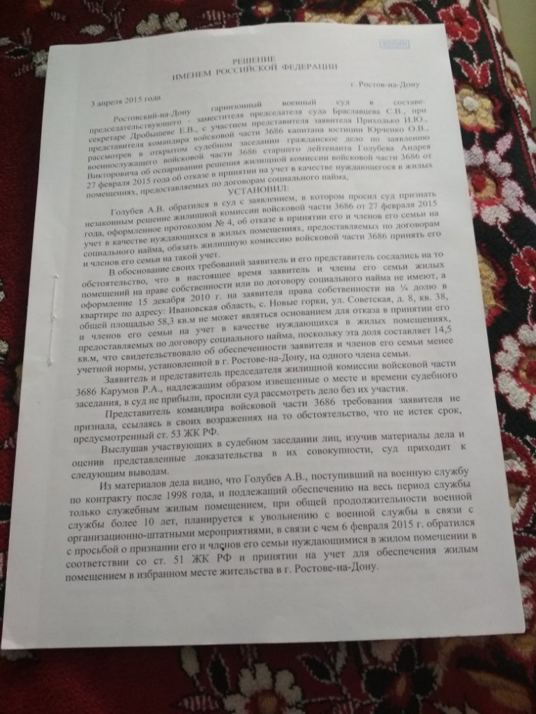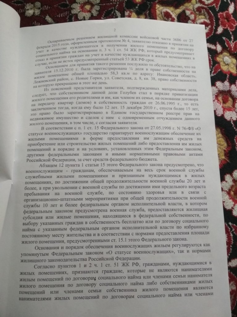 #2534Муж сам не знает, жильё получала мать от фабрики в 1996г.Ему тогда было 12 лет.Вот что я писал на соседнем форуме "...Мне вот интересно куда они денут мнение КС РФ "Как неоднократно отмечал Конституционный Суд Российской Федерации, требования абзаца первого пункта 14 статьи 15 Федерального закона "О статусе военнослужащих" об однократном обеспечении жильем и о предоставлении документов об освобождении жилого помещения основаны на вытекающем из Конституции Российской Федерации принципе социальной справедливости и направлены на предотвращение необоснованного сверхнормативного предоставления военнослужащим (и членам их семей) жилищных гарантий, установленных Федеральным законом "О статусе военнослужащих", в том числе на предотвращение необоснованного сверхнормативного предоставления государственного и муниципального жилья.". Это не там где КС РФ говорит что в полномочиях законодателя устанавливать гаранти.Здесь идёт речь именно о "вытекающем из Конституции Российской Федерации принципе социальной справедливости". Что с принципом то делать теперь? То есть законодатель допуская повторное обеспечение этот принцип нарушает? ..."QR_BBPOST Вы меня опередилиэто не та инстанция которая будет перед кем то изворачиваться.QR_BBPOST как они извернутся?Правильно. Только что Вам это даёт. Есть судебные решения где нет ссылок на КС РФ и что это меняет? Ничего. Одно решение со ссылкой на КС РФ другое решение без ссылок. Результат один.QR_BBPOST Нет?