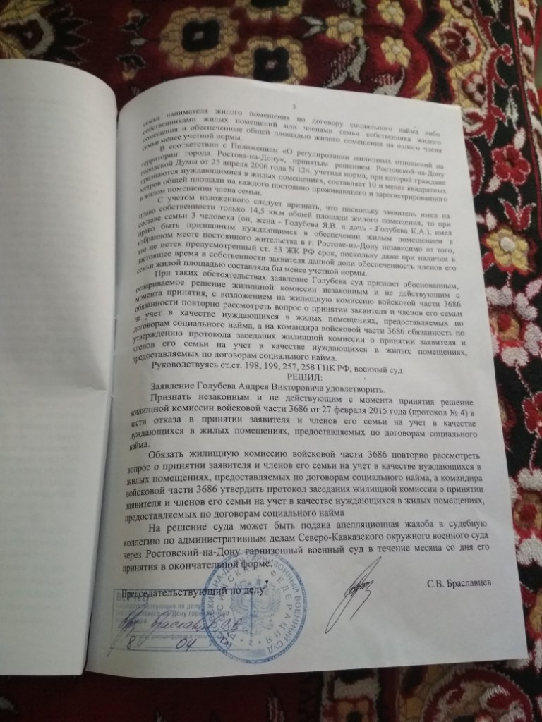 #2540По [ref]Golybka86[/ref], была решение суда о незаконном отказе в постановке и возложении обязанности рассмотреть вопрос о постановке на учет с учётом ранее выданного жилья.