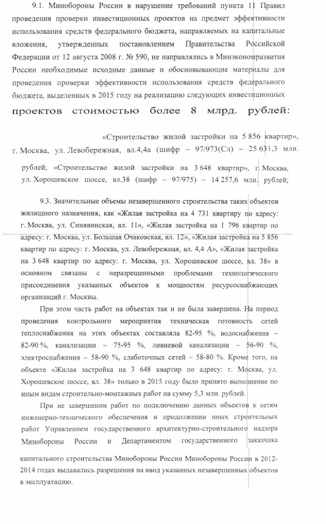 #2539731 мая 2016 г. Счетная палата направила в Минобороны представление по факту проведения в 2016 году трех контрольных мероприятий «Проверка исполнения Федерального закона «О федеральном бюджете на 2015 год и на плановый период 2016 и 2017 годов» и бюджетной отчетности об исполнении федерального бюджета за 2015 год» в Минобороны. Подборка из вырезок этого Представления