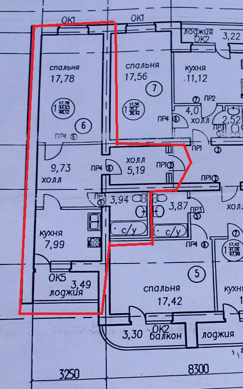 Предложили трешку в КК. Отказались.Жить в ней можно только если соединить две спальни в одну, и кухню объединить с узким залом ( ну типа, столовая-гостинная).Еще и доплату хотят за этот геморой