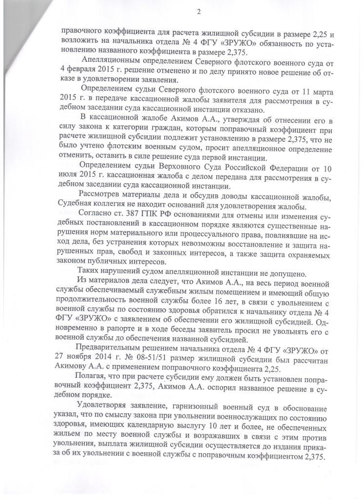 - обязать начальника ЗРУЖО направить решение о предоставлении ему и членам его семьи жилищной субсидии для приобретения (строительства) жилого помещения с поправочным коэффициентом 2,375 и пересчитанным размером жилищной субсидии в ФКУ УФО МО РФ по СПб, ЛО и РК;