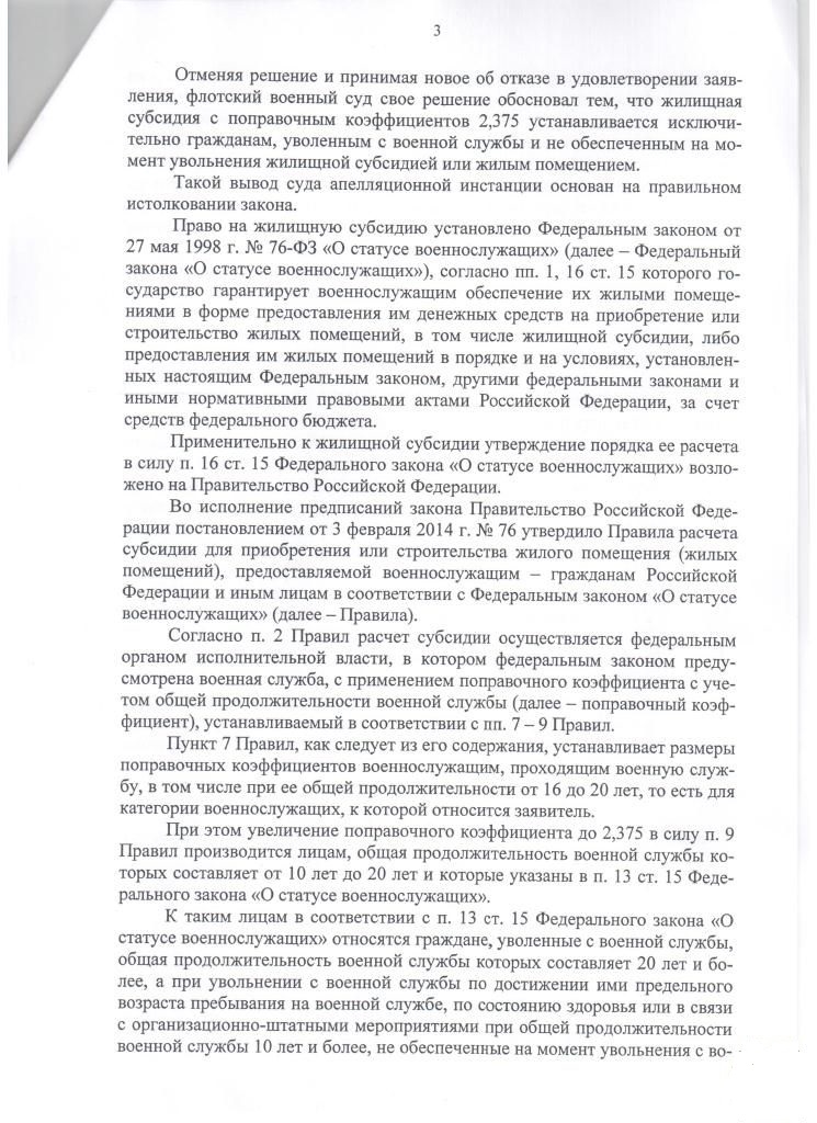 - обязать руководителя ФКУ УФО МО РФ по СПб, ЛО и РК произвести выплату ему недостающей части жилищной субсидии для приобретения (строительства) жилого помещения, рассчитанной с поправочным коэффициентом 2,375;