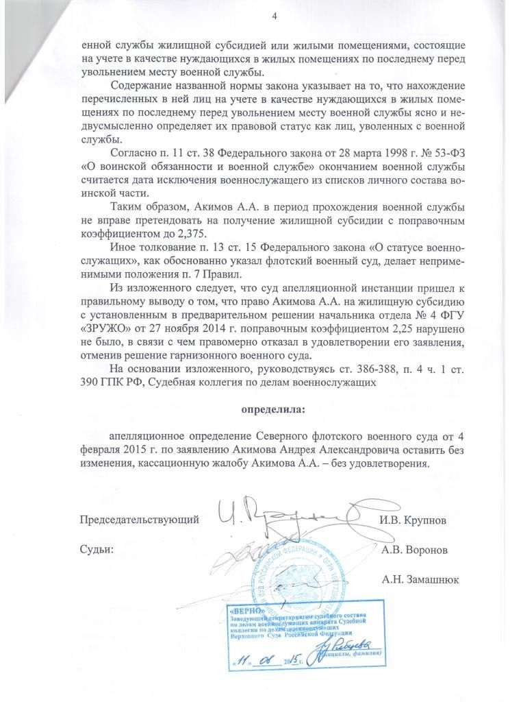 Апелляционное определение СФ ВС от 4 февраля 2015 г. по заявлению Акимова Андрея Александровича оставить без изменения, кассационную жалобу Акимова А.А. - без удовлетворения.