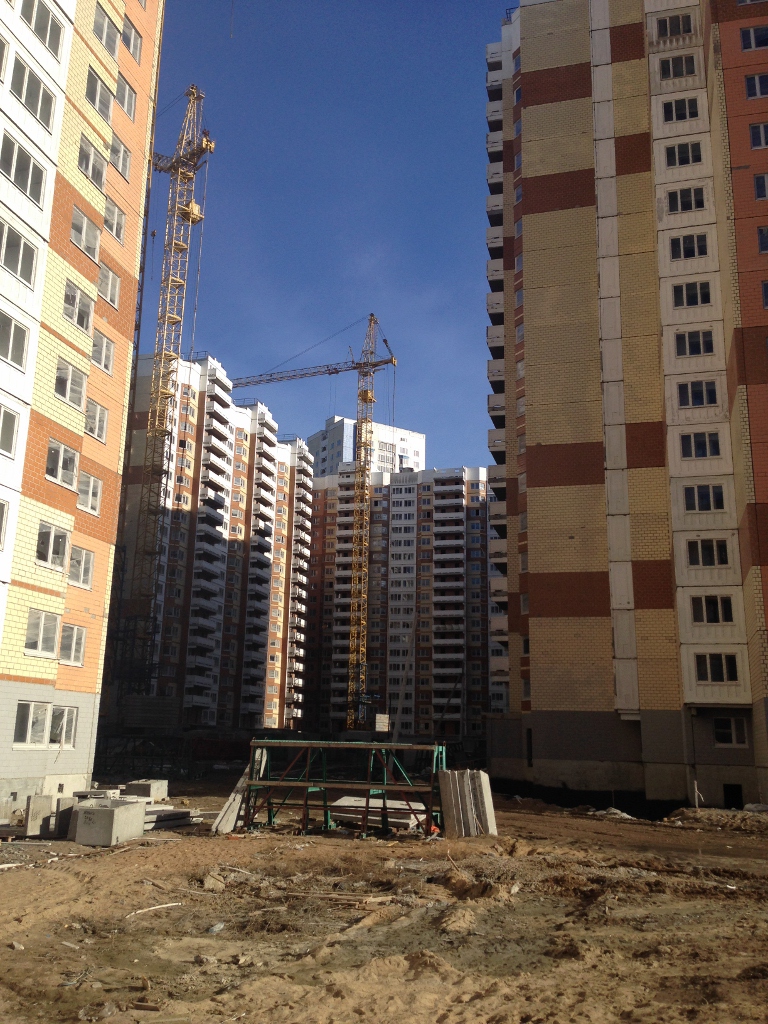 Такое впечатление, что все строители - англичане, жутко боящиеся пятницу 13-е. Никого с 9.30 до 10.40 на площадке строительных корпусов 1,3,4,5,6. Ветродуйчик приличный. Асфальт и брусчатка у домов засыпаны частями баллонов из-под монтажной пены и герметика. Много не закрытых люков. Брусчатка положена как попало (а может просто грунт гуляет