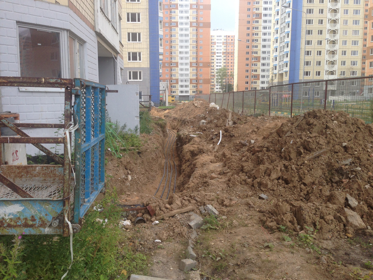 В зоне домов первой очереди прокопаны траншеи и проложены электрические кабели 0,4 на корпусе 10,11,18 и что очень порадовало меня 22 корпусу. Практически заканчивают прокладку и будут засыпать.