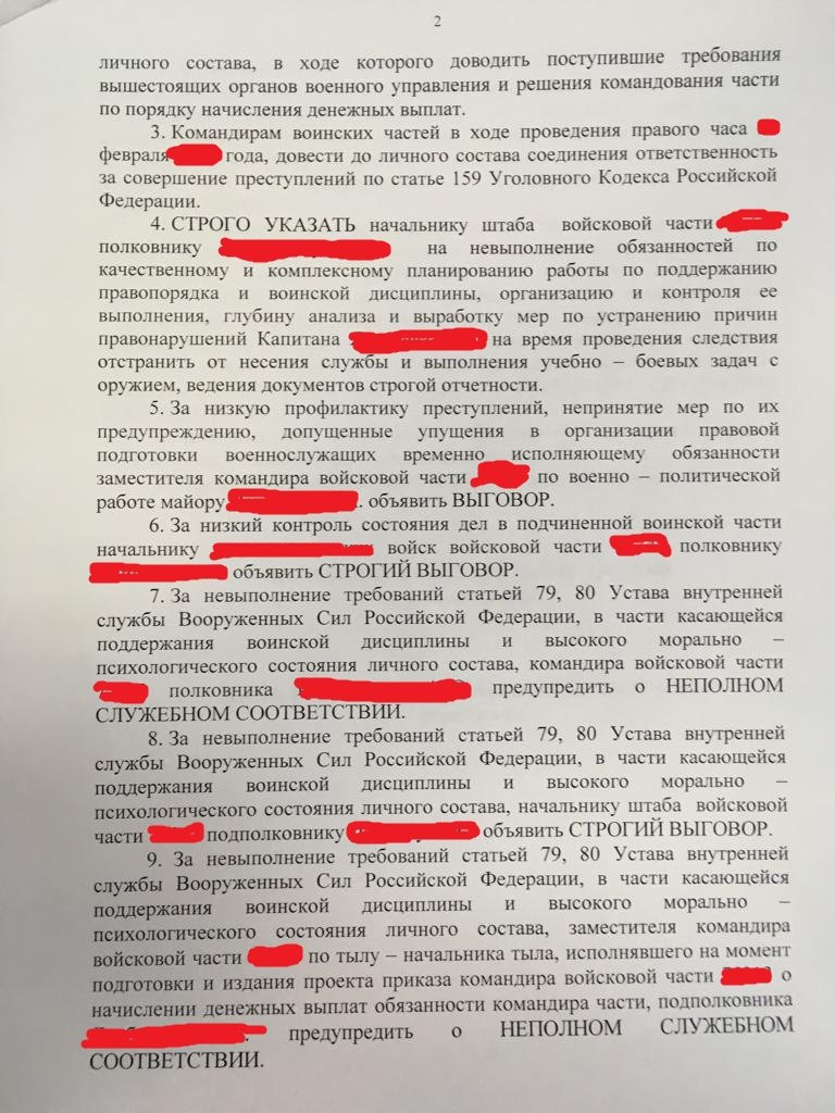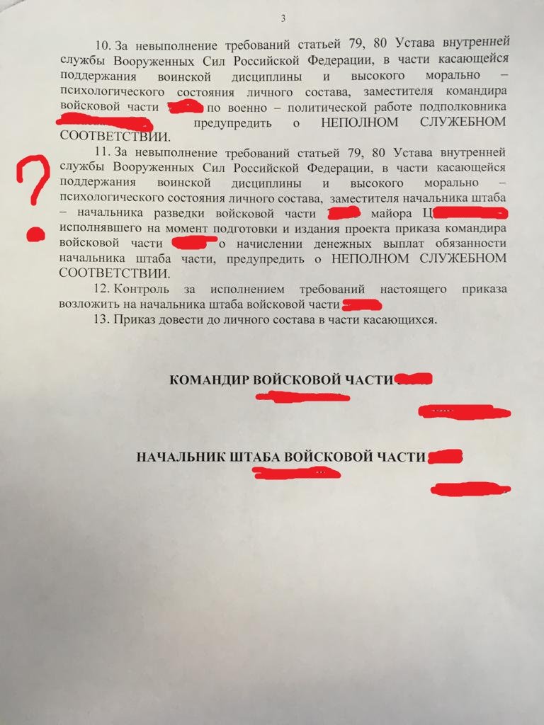я уже не говорю про отсутствие разбирательства и моих объяснении. сама суть приказа очень размыта. конкретная вина не указана... а также отвечает ли начальник штаба за суть приказа, ведь единоначалие никто не отменял...