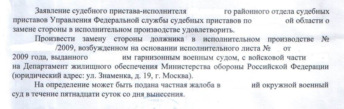 Добрый день. У приставов Москва, ул. Бутырский вал, д. 5 видимо заключена мировая с ДЕПАРТАМЕНТ ЖИЛИЩНОГО ОБЕСПЕЧЕНИЯ МИНИСТЕРСТВА ОБОРОНЫ РФ,