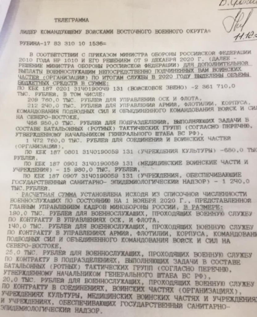 #2944Добрый день уважаемые коллеги, сын служит у меня в отдельном батальоне морской пехоты ЮВО,контрактники, так вот им сказали что по 1010 они получат по 15 тысяч, а остальные деньги пойдут на строительство главного храма министерства обороны, в следующем году наверное будут говорить на главную мечеть минобороны и так с каждым годом на все конфессии по религиям России. У меня нет слов, одни эмоции.