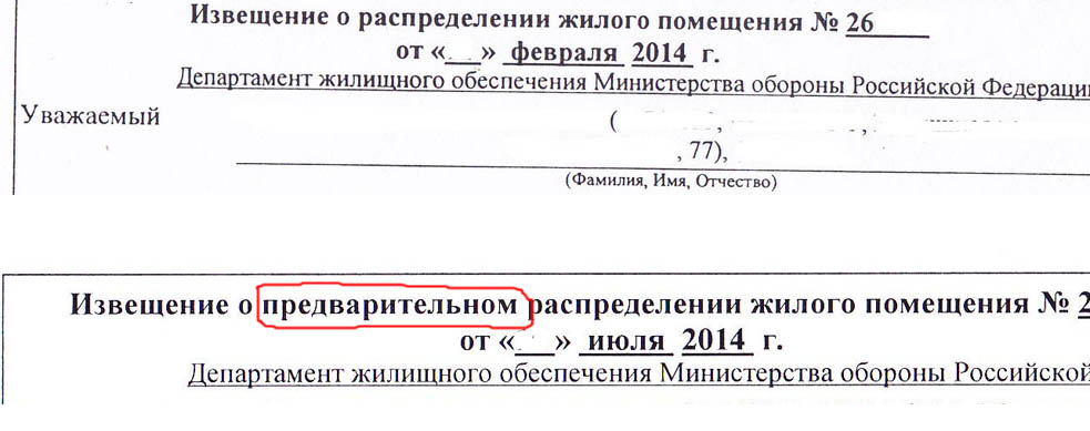 извещение о предварительном распределении жилого помещения, с превышением нормы предоставления и соответствующей доплатойесли распределение предварительное, как это указано на самом извещении? Так и написано?