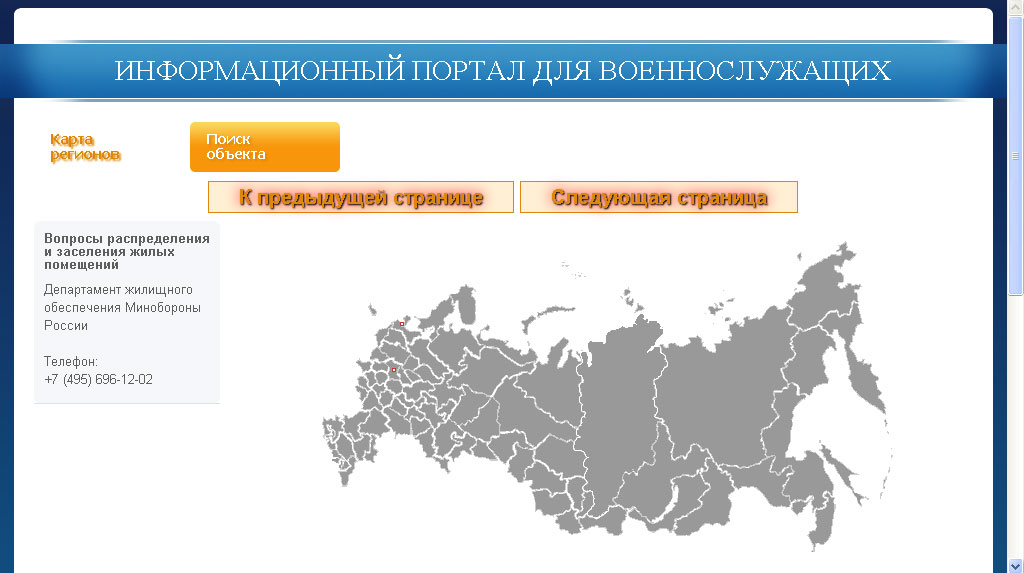 На сайте Министерства Обороны РФ появился занятный раздел «Жилье военнослужащим» http://www.dom.mil.ru При заходе на который можно увидеть флеш-карту с федеральными округами. Нажимая на тот или иной округ, сайт выдает список адресов, зачастую повторяющихся с одинаковыми фотографиями домов и внутренней отделкой. На этом прелести сайта не заканчиваются. На детальной странице объекта можно увидеть количество квартир в доме с разбивкой в зависимости от количества комнат. И тут встает вопрос: «А что же дальше?» Квартиры посмотрели, кто-то нашел свой адрес, а чей-то потерялся в бесчисленных адресах сайта. К примеру, военный получает извещение – «Вас распределили на объект Х». Обрадованный будущий новосел ищет сей объект. Не находит. Потому как на сайте министерства этого объекта нет…