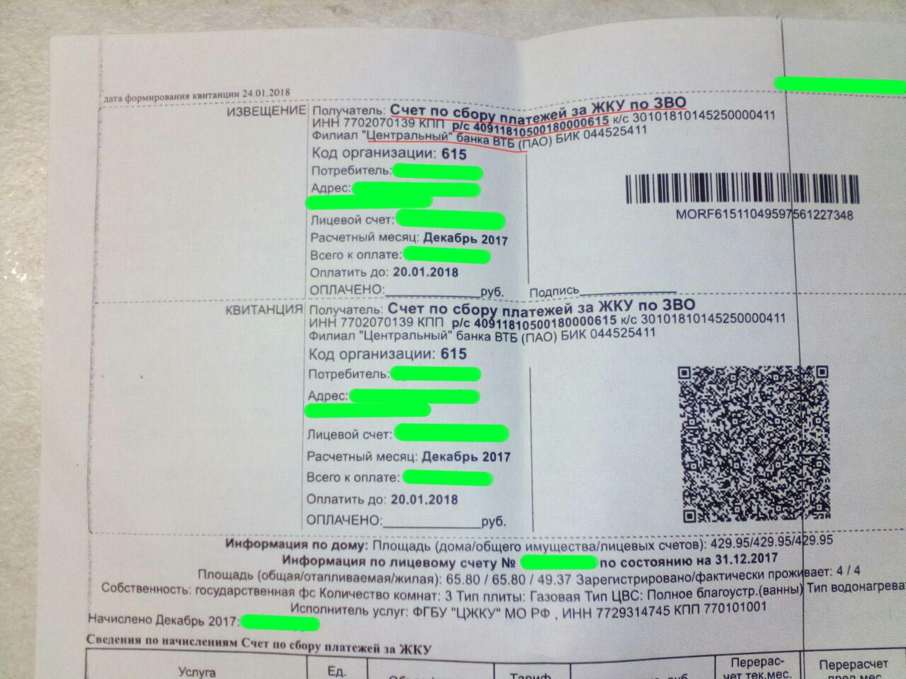 #45Я искал в личном кабинете сбербанка по ИНН, потом из списка выбрал нужный военный округ (ЗВО). Там под всеми вариантами написано "г.Москва", значит не совпадают, если Вы это имели ввиду.Скажите, у Вас адрес «Счета» и регион проживания совпадают?Сегодня оплатил первую квитанцию в СБОЛ за ноябрь. Платеж прошел, комиссия 0,5%.