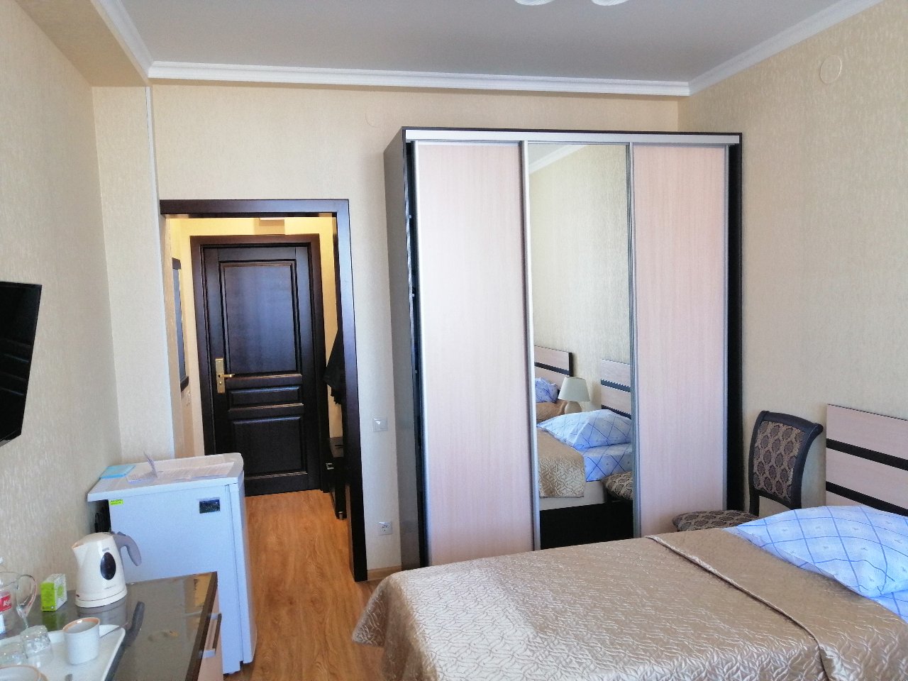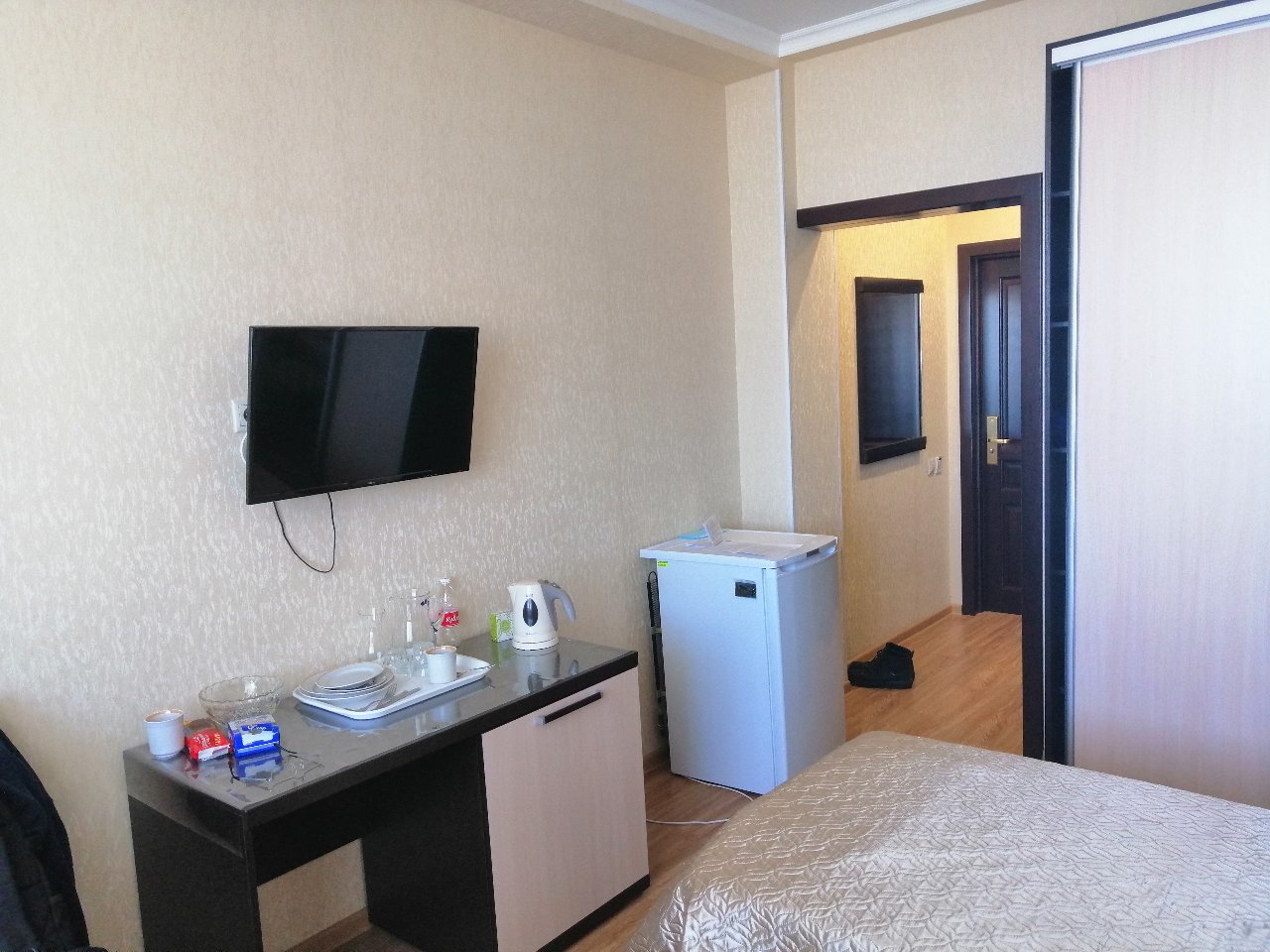 Жил в третьем корпусе, который недавно отремонтирован. Номер обычный не люкс. Ремонт в общем добротный. Выдали пластиковый пропуск, который открывает турникеты и дверь в номер. Плитка и обои подобраны со вкусом. Выключатели есть везде, можно включить (выключить) свет прямо с кровати или из прихожей. Телевизор плоский, есть USB разъем. Можете дома накидать фильмов на флешку и смотреть. Окна пластиковые,открывается режим проветривания, есть балкон. В батарее терморегулятор. Если открыть полностью, то будет жарко. Холодильник и чайник работали нормально. Белье меняли раз в 5 дней. Уборка качественная. Даже табличка есть как в отелях «не беспокоить». Из минусов по ремонту, я бы вместо занавесок поставил пластиковые шторки, дабы вода не летела наружу. За это 4 с плюсом из пяти.