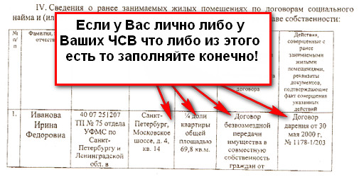 в IV пункте сведения о ранее занимаемых ЖП по договорам соц найма ,что мне правильно записать?