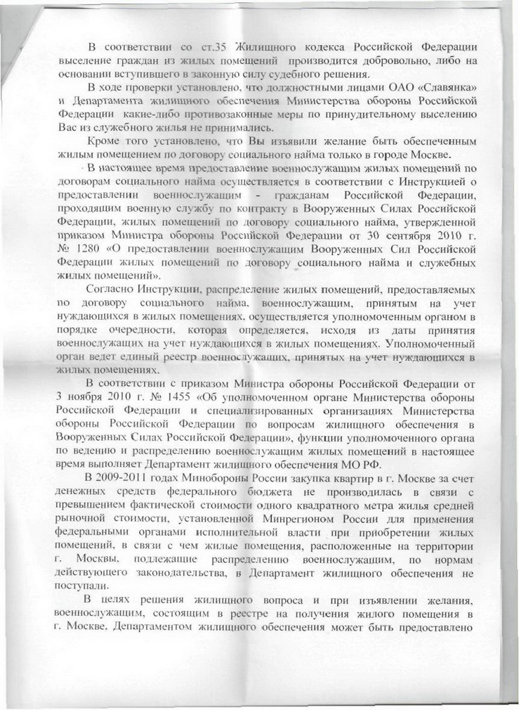 1. Непредоставление жилых помещений военнослужащим в Москве?