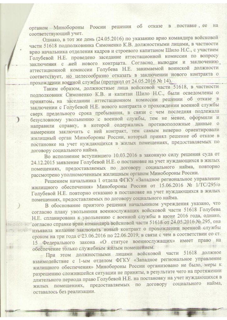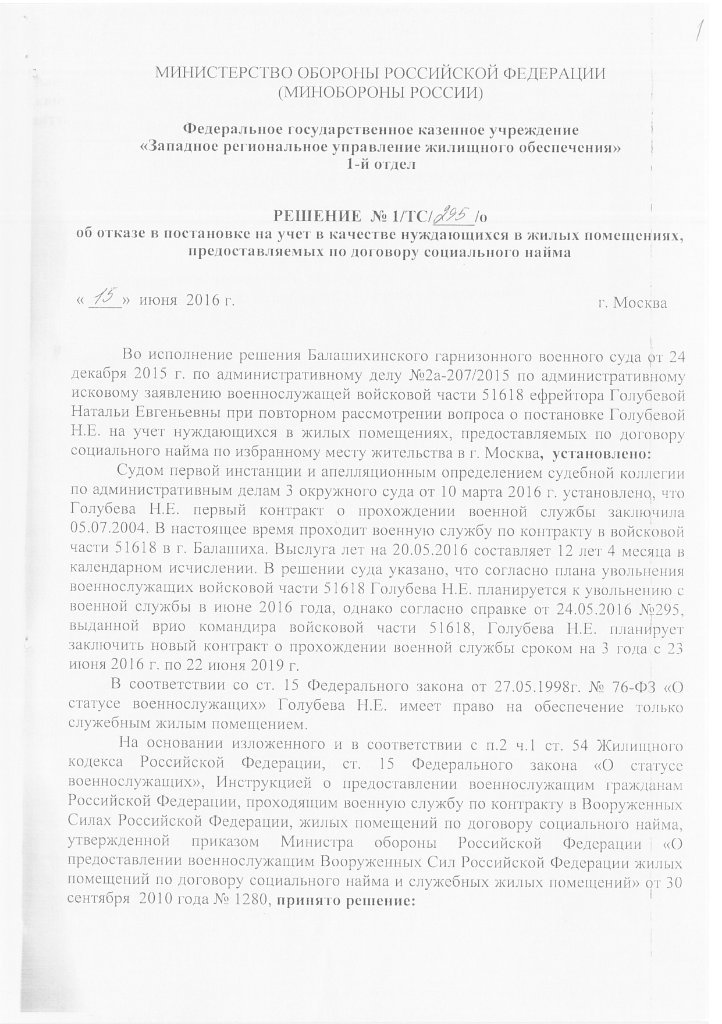лжешь собака(с) дубль дваQR_BBPOST Потом я же Вам еще тогда говорил, что с судом по факту отказа в постановке на ЖУ тянуть не нужно. Как только отказ получили, сразу в суд. А Вы дождались, когда Вашу жену уволили и исключили из списков части.