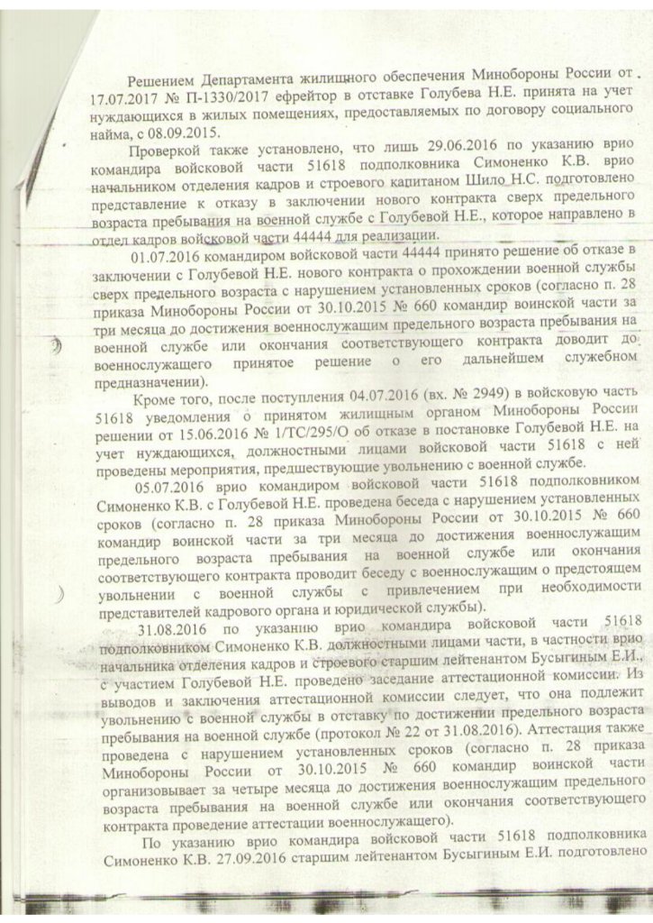 #3028Ну так эти уроды из апелляционного военного суда и ЖК правят под себя юродивых утверждая, что у бездомного воина запредельшика отсутствуют основания для принятия на жилищный учет. При наличии в деле решения суда о незаконности отказа в принятии на учет, выданного ИЛ и возбужденного производства о понуждении к рассмотрениюУважаемый [ref]alex56[/ref], я понимаю беспредел ВКПИ 07-30, но Вы-то зачем на их сторону становитесь?QR_BBPOST Неправильно понимаете. Разрешено увольнять с жильем по месту службы. Это было всегда.