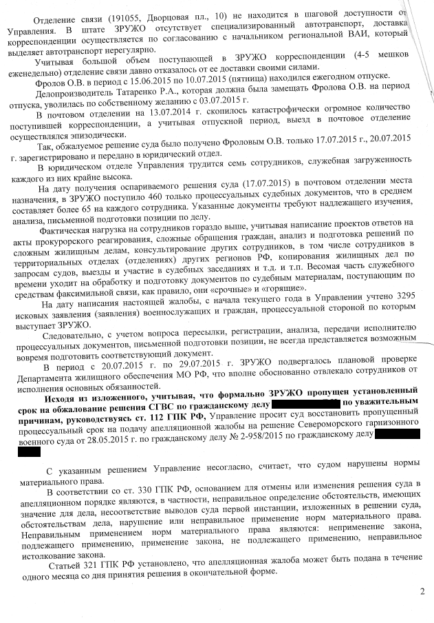 #30199[ref]Guess[/ref], судился с ЗРУЖО, выиграл в североморском ГВС. подали аппеляцию в северный флотский суд. там тоже победил. адвокатским услугами не пользовался. хватило "правового минимума" и умение излагать свои мысли как письменно так и устно.